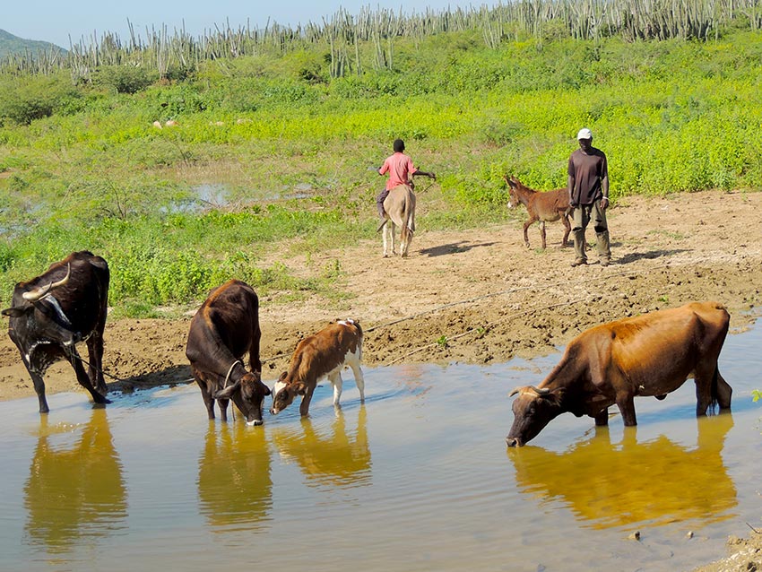 La plupart des agriculteurs ruraux n’ont pas accès à l’eau que ce soit pour leur consommation régulière que pour l’irrigation de leurs culture. Ils doivent parcourir des kilomètres en quête de cette précieuse ressource. Heifer Haiti promeut la gestion de l’eau au niveau local en mettant l’accent sur l’accès à une eau potable de qualité tout en travaillant pour la mise en place de système permettant une irrigation suffisante des terres. Heifer continue d’oeuvrer avec les communautés en construisant des citernes d’eau permettant la collecte d’eau de pluie; l’organisation travaille également pour le forage de puits d’eau, l’installation de pompes à eau et la construction de lacs collinaires.